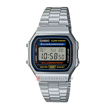 6. Jam Tangan Casio General A168WA-1W Men Retro Digital Dial Stainless Steel Strap