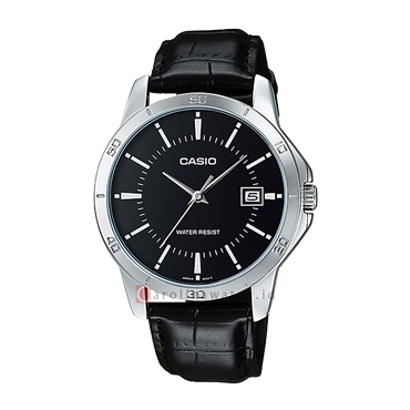 8. Jam Tangan Casio MTP-V004L-1A Men Black Dial Black Leather Band