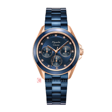 ( Jam Tangan Alexandre Christie Fashion AC 2A50 BFBURBU Women Blue Dial Blue Stainless Steel Strap )