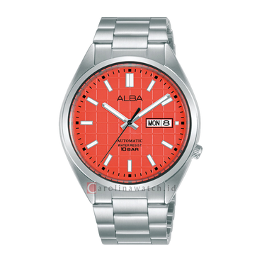 ( Jam Tangan ALBA Mechanical AL4323X1 Men Orange Patterned Dial Stainless Steel Strap )