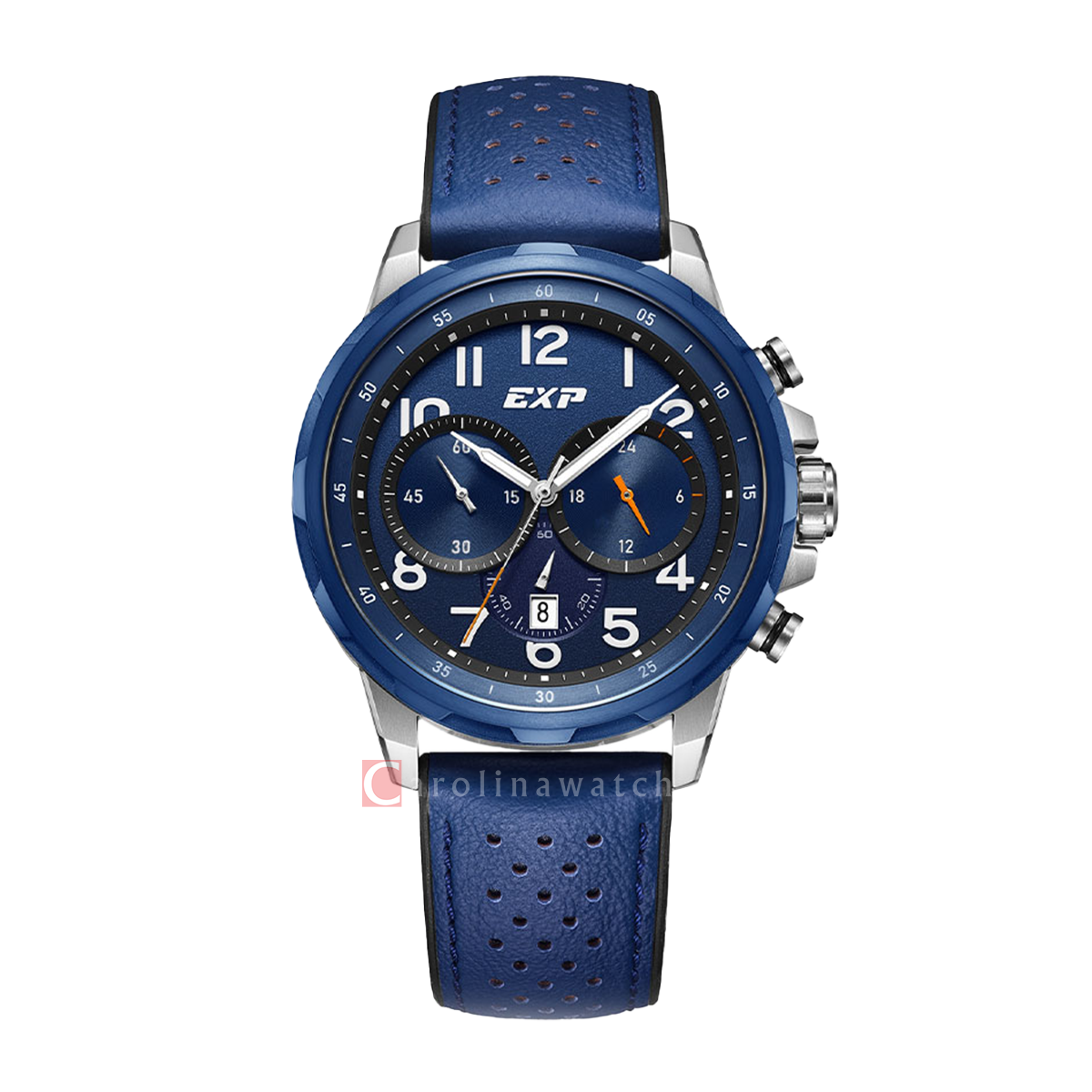 ( Jam Tangan EXP Sport EX 6843 MCRTUBU Men Chronograph Blue Dial Blue Leather Strap. Sumber: Carolinawatch.id )