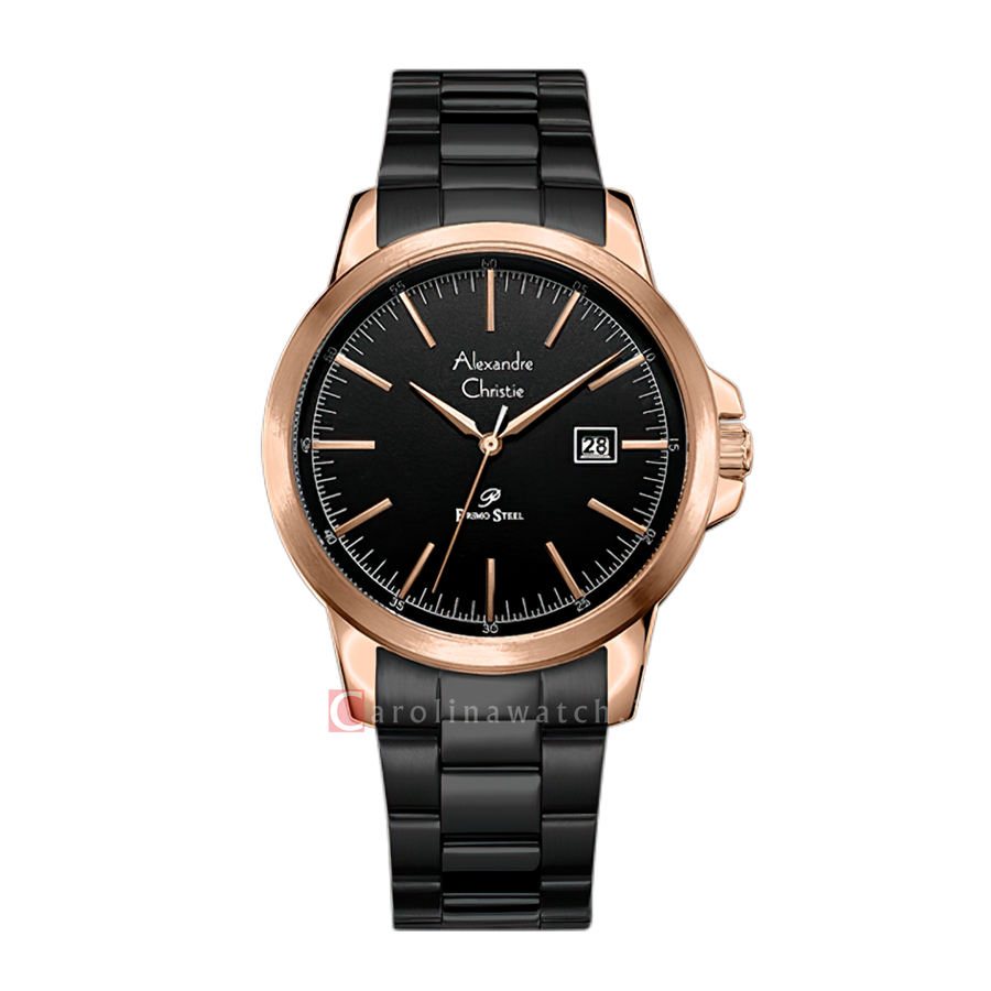 1x Jam Tangan Alexandre Christie Primo Steel AC 1008 MDBBRBA Men Black Dial Black Stainless Steel Strap,