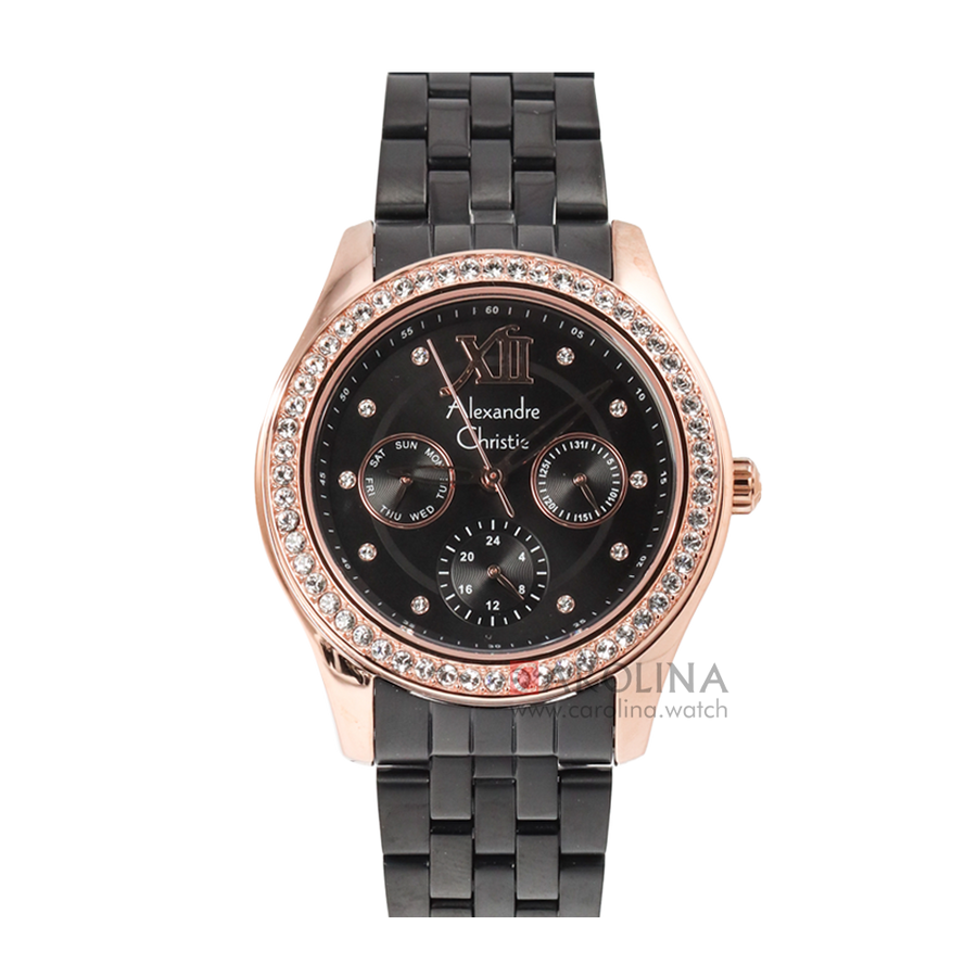 1x Jam Tangan Alexandre Christie AC 2496 BFBBRBA Women Black Dial Black Stainless Steel Strap,