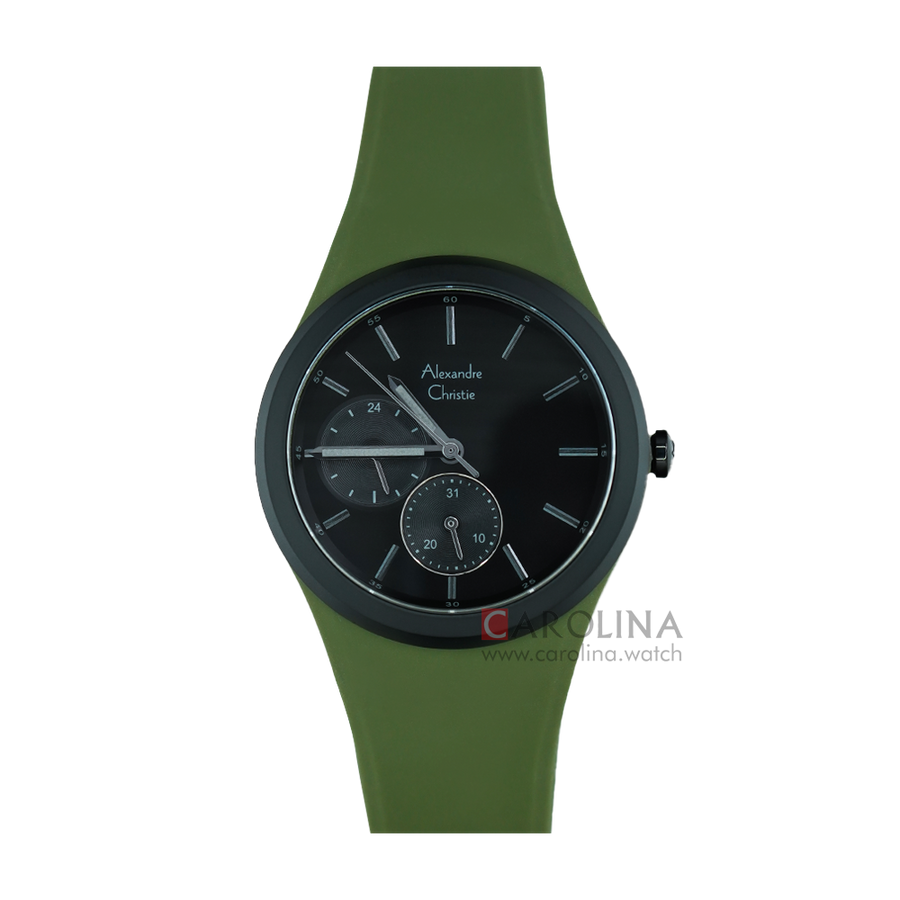 1x Jam Tangan Alexandre Christie Multifunction AC 2663 BFRIPBAGN Women Black Dial Dark Green Rubber Strap,