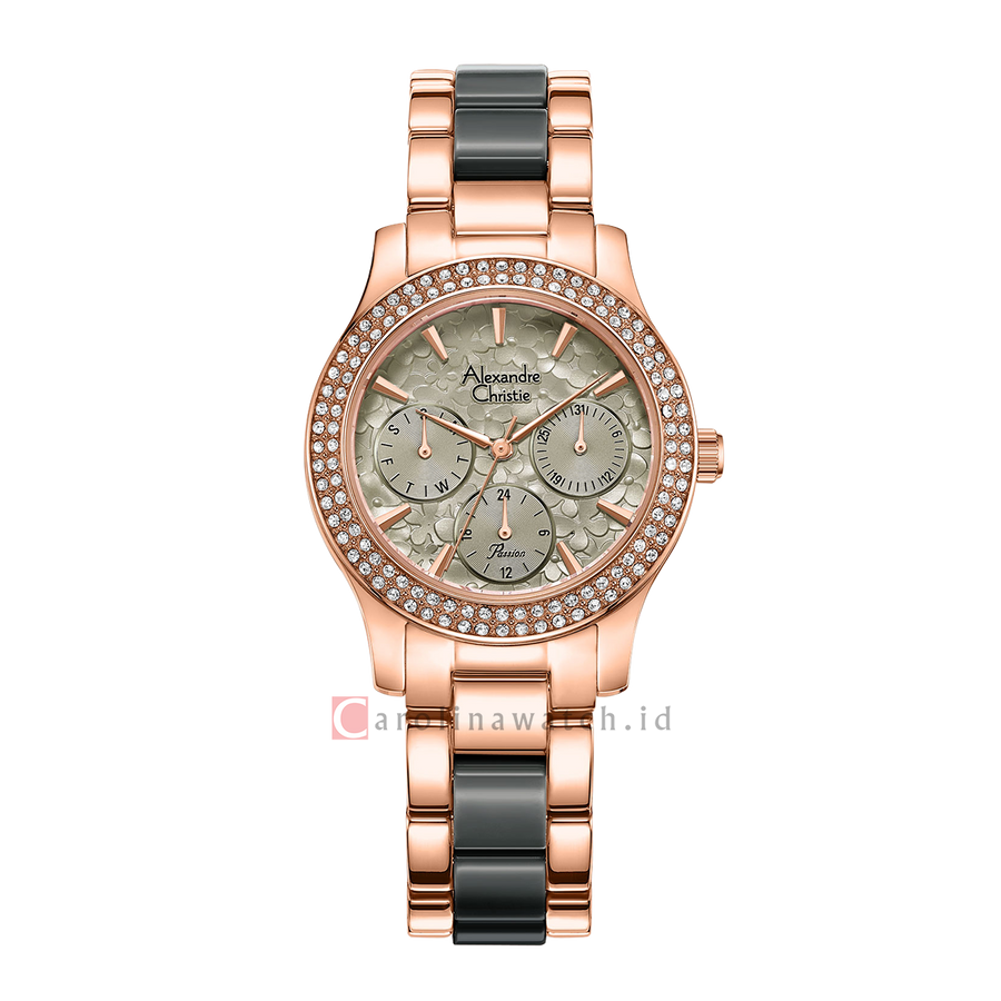 Jam Tangan Alexandre Christie Passion Boyfriend Multifunction AC 2932 BFBRGGR Women Grey Pattern Dial Dual Tone Stainless Steel Strap