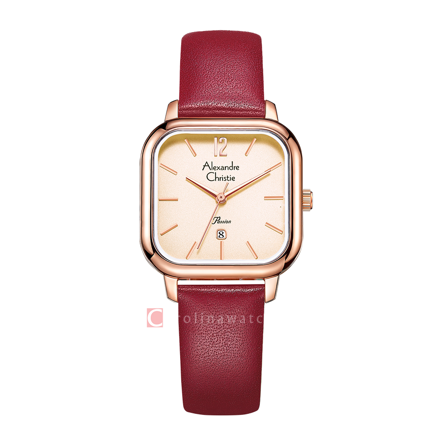 1x Jam Tangan Alexandre Christie Passion AC 2A13 LDLRGRG Women Rose Gold Red Leather Strap,