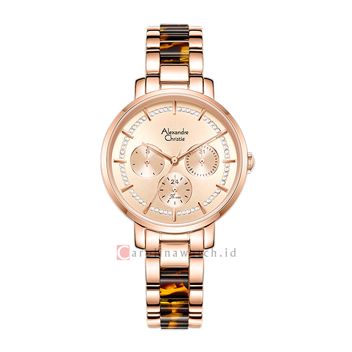 1x Jam Tangan Alexandre Christie Passion AC 2A56 BFBRGRGBO Women Gold Dial Dual Tone Stainless Steel Strap