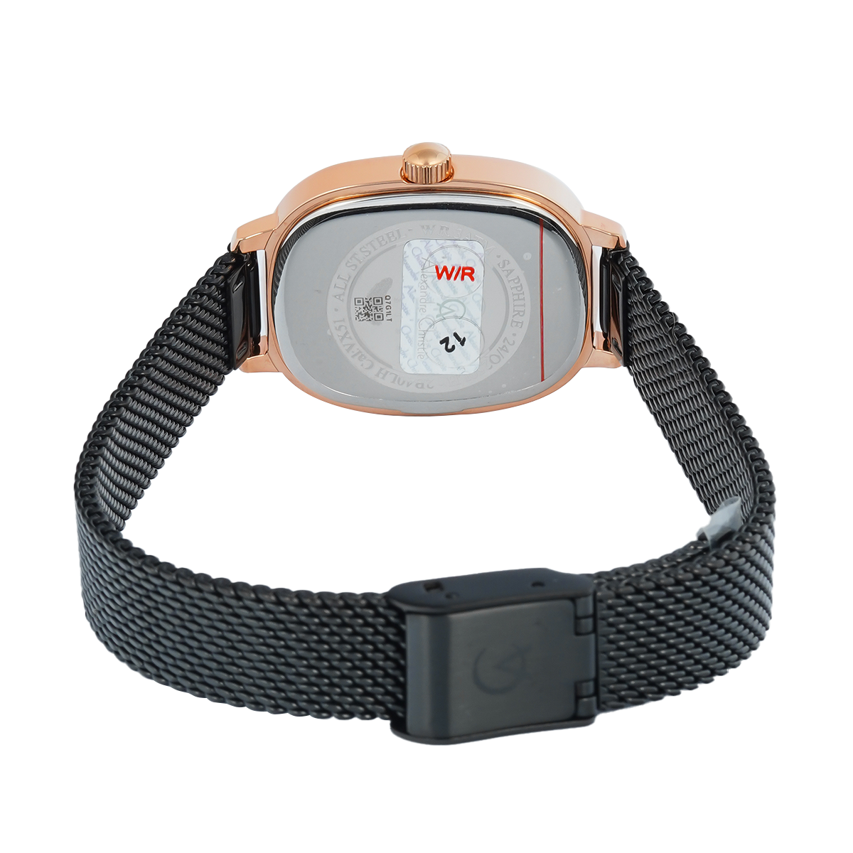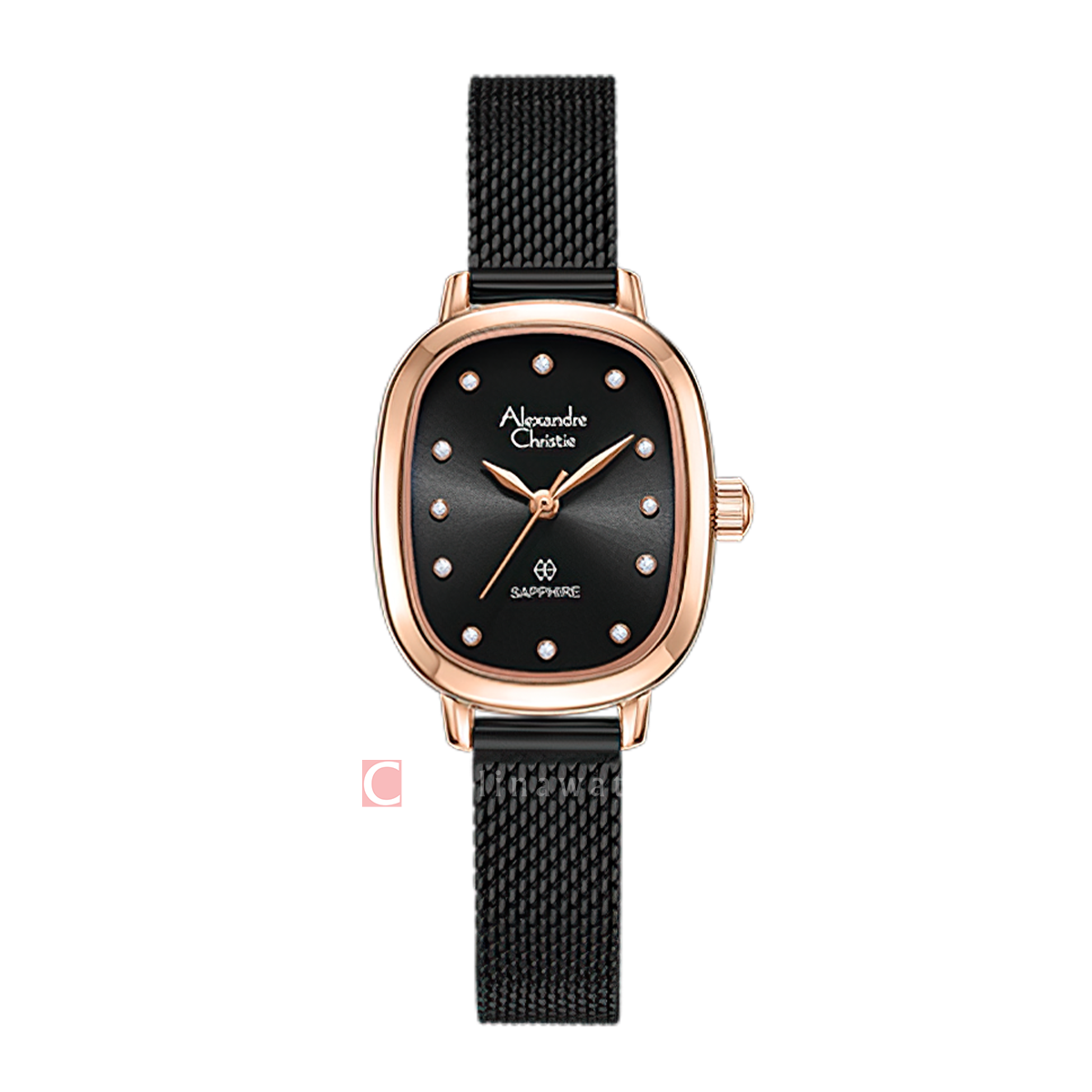 Alexandre Christie AC 2B40 LHBBRBA Sapphire Women Black Dial Black Mesh Stainless Steel Strap