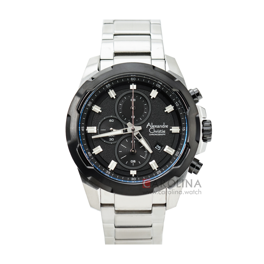 Jam Tangan Alexandre Christie Chronograph AC 6523 MCBTBBA Men Black Dial Stainless Steel Strap