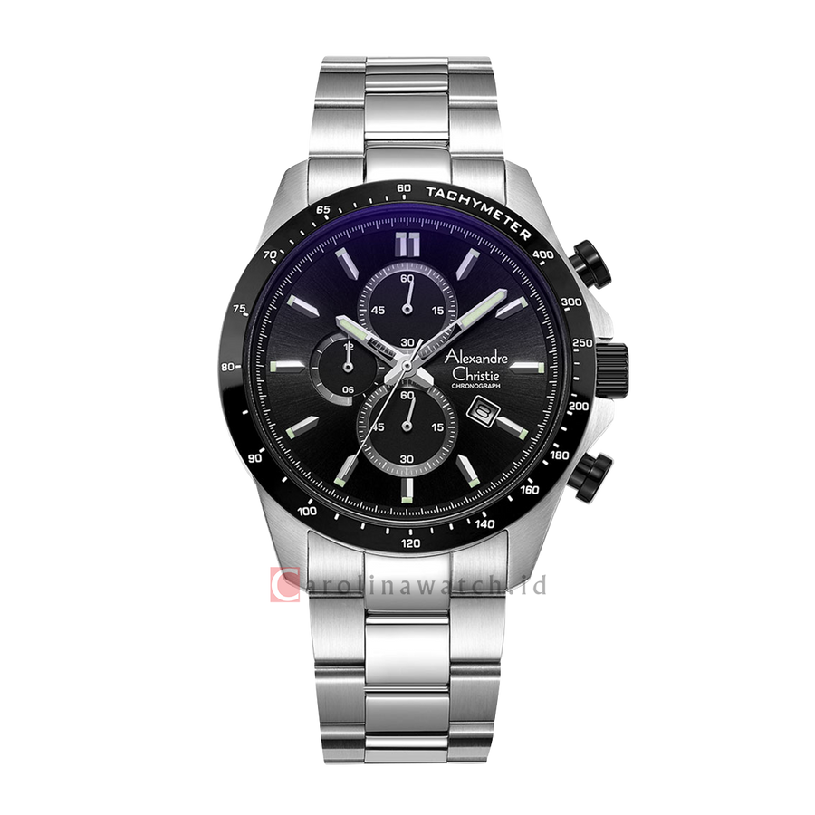 Jam Tangan Alexandre Christie Chronograph AC 6630 MCBTBBA Men Black Dial Stainless Steel Strap