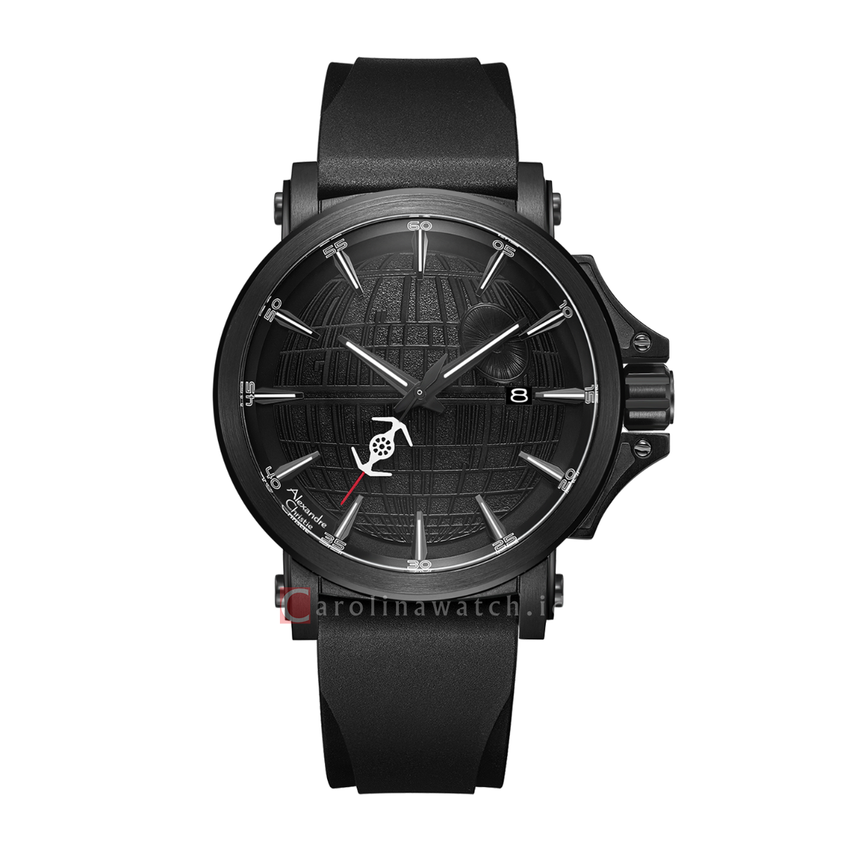 1x Jam Tangan Alexandre Christie AC 9205 MARDS1 Men Death Star Wars Black Dial Black Premium Rubber Strap Strap Limited Edition