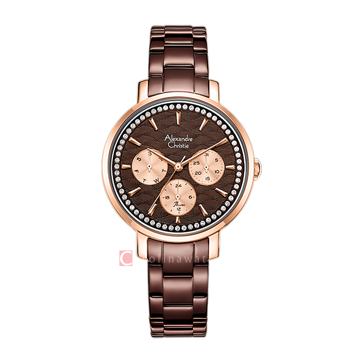 1x Jam Tangan Alexandre Christie Passion AC 2A56 BFBROBO Women Brown Dial Brown Stainless Steel Strap