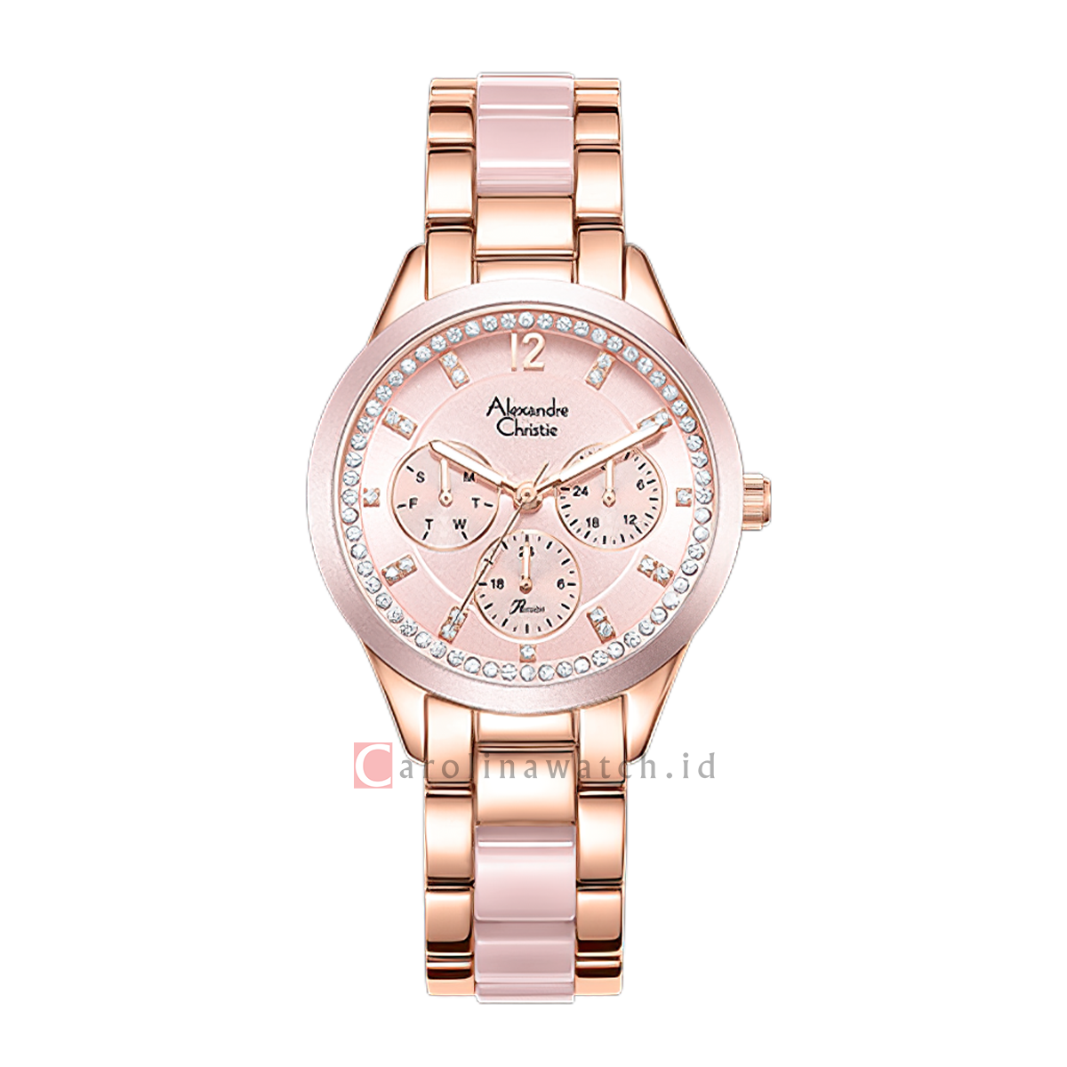 1x Jam Tangan Alexandre Christie Passion AC 2B01 BFBRGPNDR Women Pink Dial Dual Tone Stainless Steel Strap,