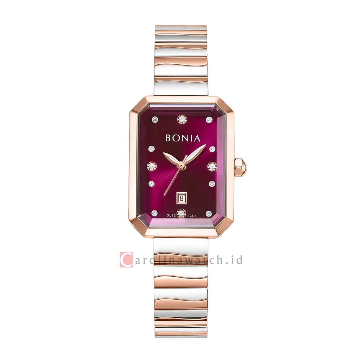 1x Jam Tangan BONIA B10871-2667 Women Red Dial Dual Tone Stainless Steel Strap