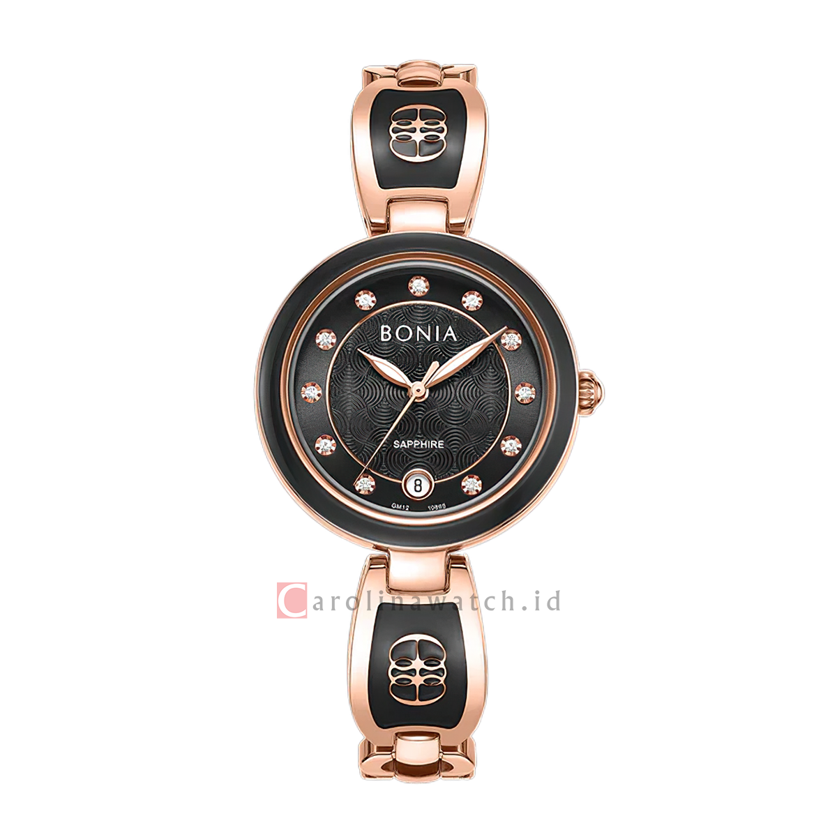 1x Jam Tangan BONIA Elegance B10865-2537S Women Black Dial Dual Tone Stainless Steel Strap