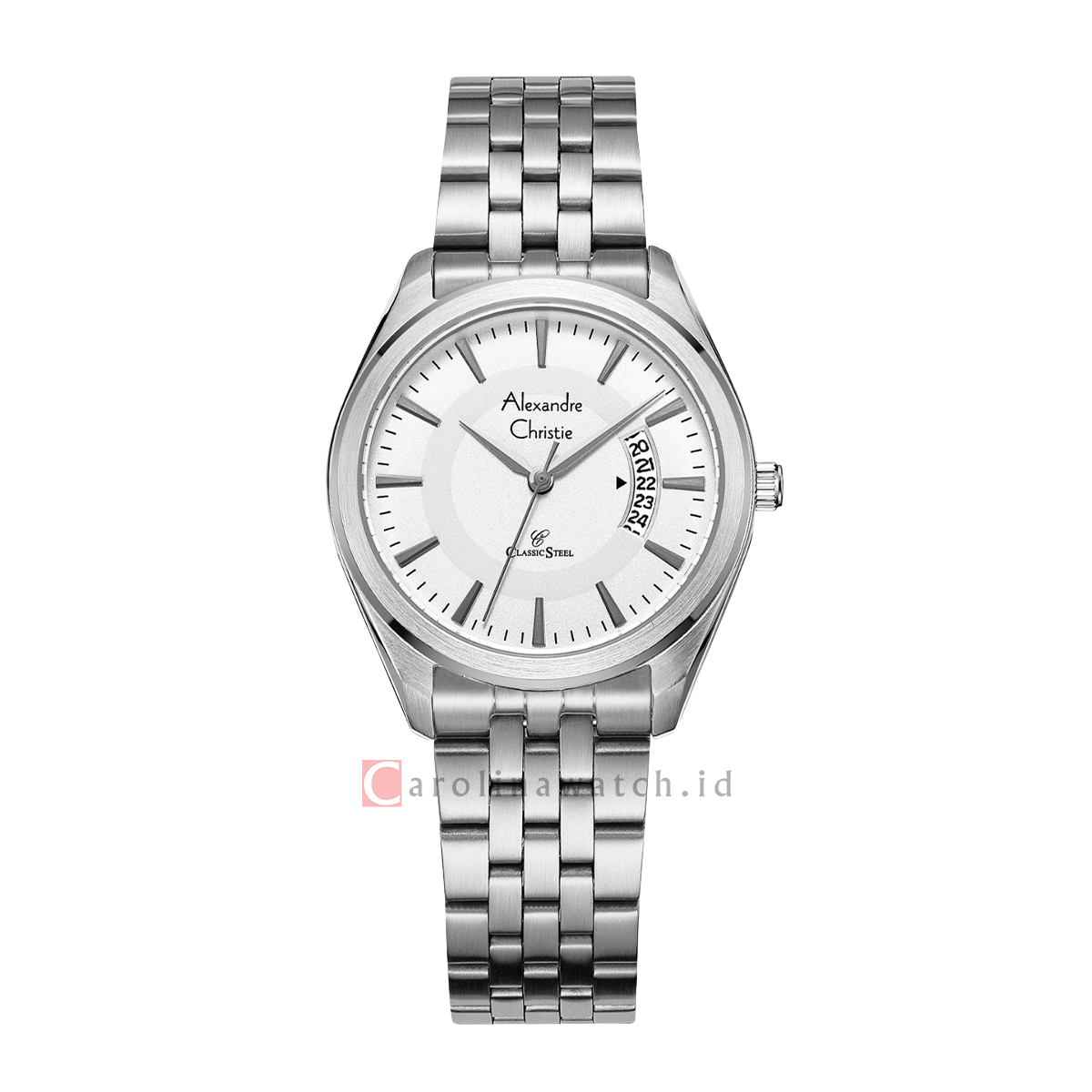 1x Jam Tangan Alexandre Christie Classic Steel AC 8674 LDBSSSL Women Silver White Dial Stainless Steel Strap,
