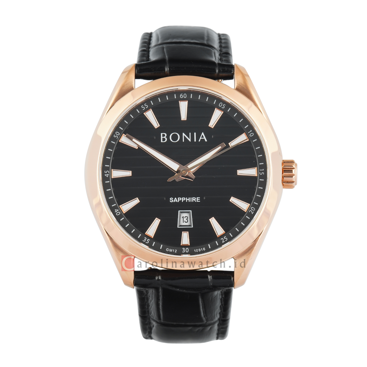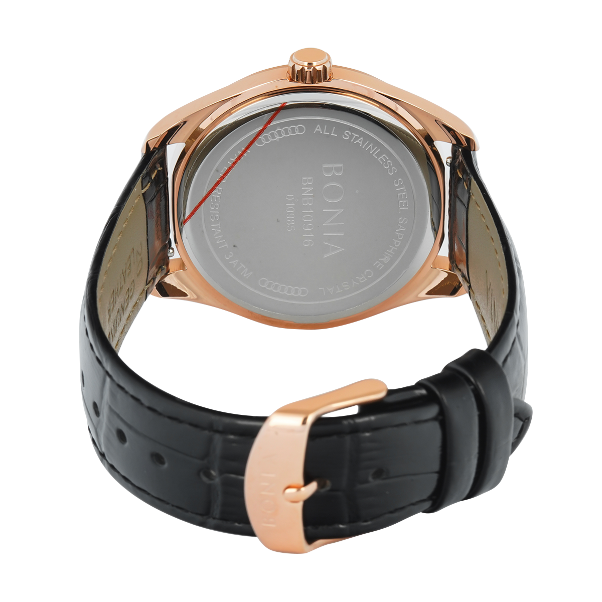 1x Jam Tangan BONIA B10916-1532 Men Black Dial Black Leather Band