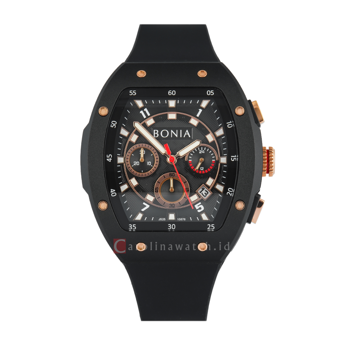 1x Jam Tangan BONIA Chronograph B10878-1932C Men Black Dial Black Rubber Strap