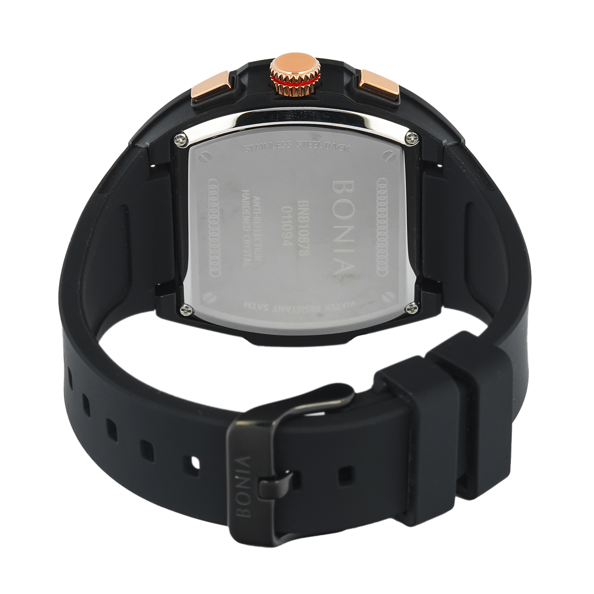 BONIA Chronograph B10878-1932C Men Black Dial Black Rubber Strap