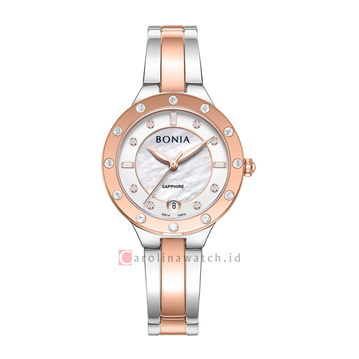 Jam Tangan BONIA Elegance B10870-2617S Women Silver Dial Dual Tone Stainless Steel Strap