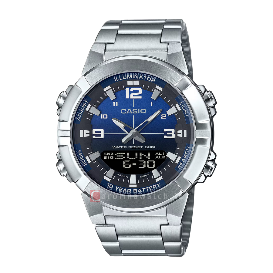 Casio Analog-Digital Combination AMW-870DA-2A1 Men Blue Dial Stainless Steel Band