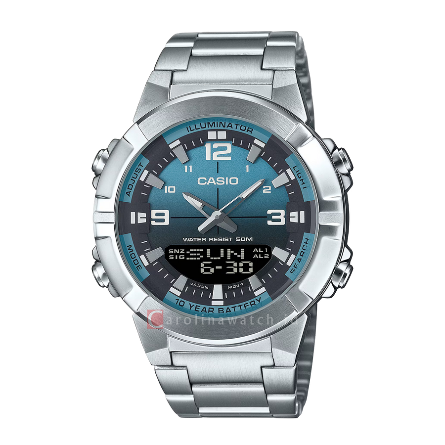 Casio Analog-Digital Combination AMW-870DA-2A2 Men Blue Dial Stainless Steel Band