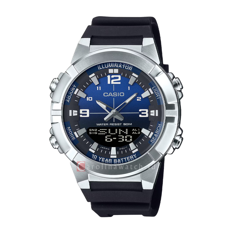 Jam Tangan Casio Analog-Digital Combination AMW-870A-2A Men Blue Dial Black Resin Strap