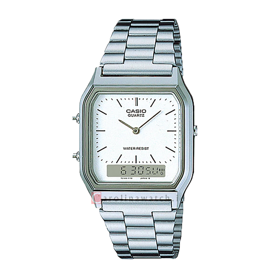 Jam Tangan CASIO General AQ-230A-7D Men White Digital Analog Dial Stainless Steel Strap