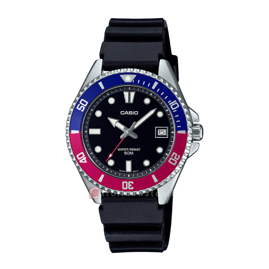 1x Jam Tangan Casio General MDV-10-1A2 Men Black Dial Black Resin Band