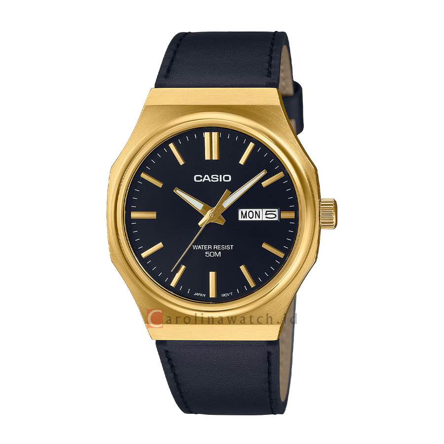1x Jam Tangan Casio General MTP-E735GL-1A Men Black Dial Black Leather Band