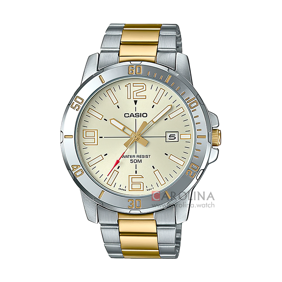 Jam Tangan Casio General MTP-VD01SG-9B Men Light Gold Dial Dual Tone Stainless Steel Band