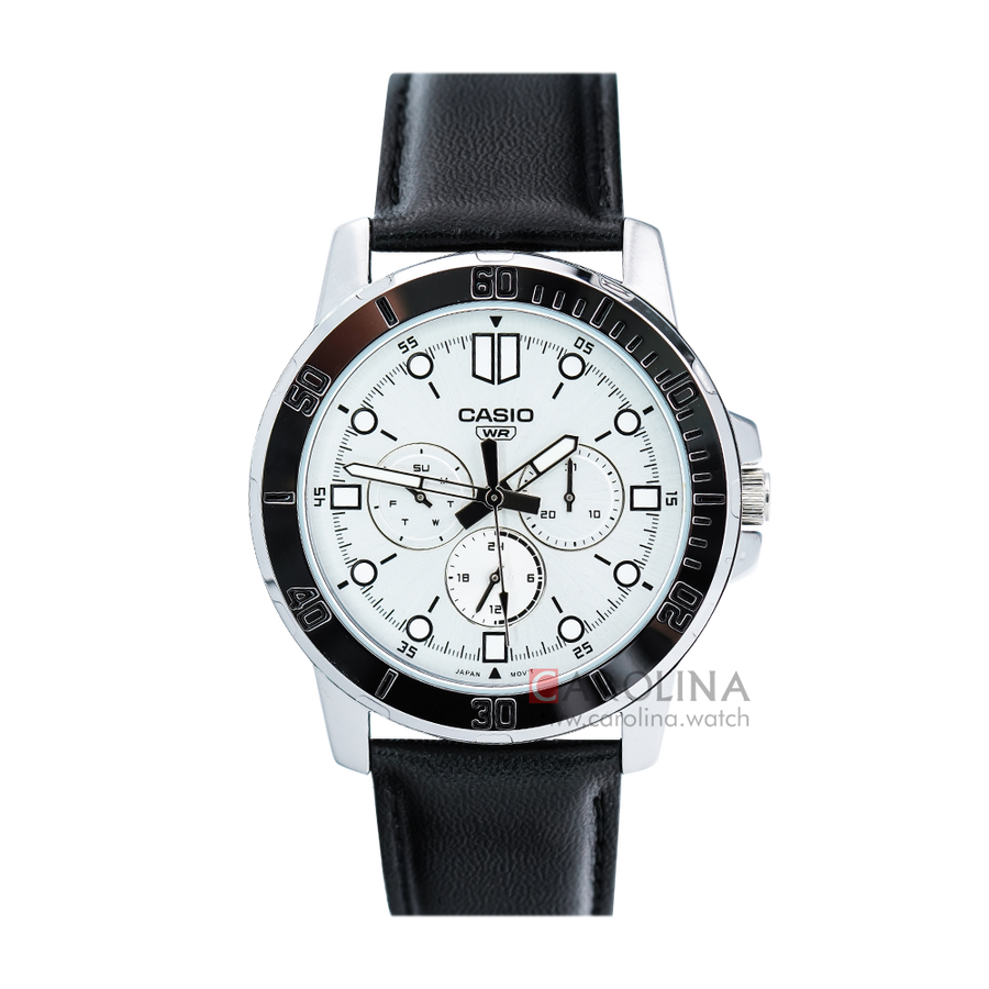Jam Tangan Casio General MTP-VD300L-7E Men Silver Dial Black Leather Strap