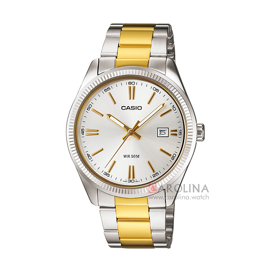 1x Jam Tangan Casio General MTP-1302SG-7A Men Silver Dial Dual Tone Stainless Steel Band