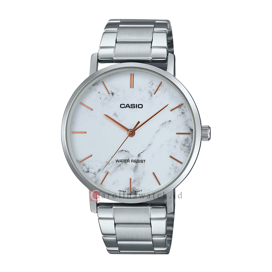 1x Jam Tangan Casio MTP-VT01DM-7A Men Silver Dial Stainless Steel Band