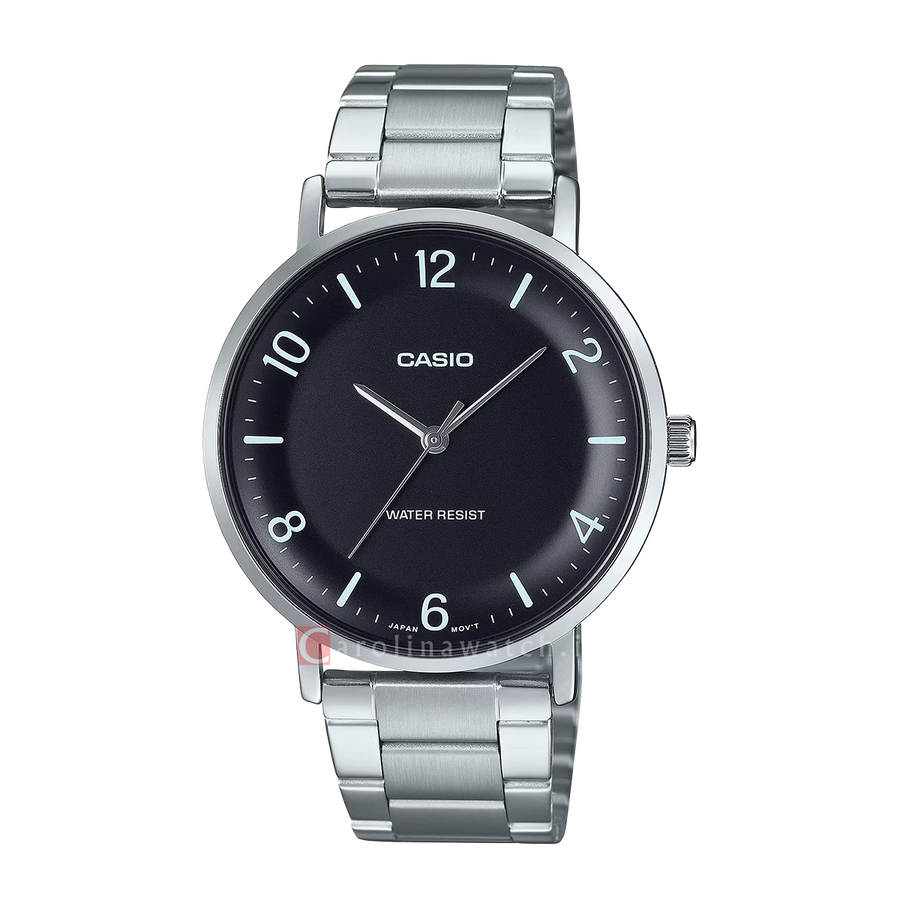 Jam Tangan Casio MTP-VT03D-1B Men Black Dial Stainless Steel Band