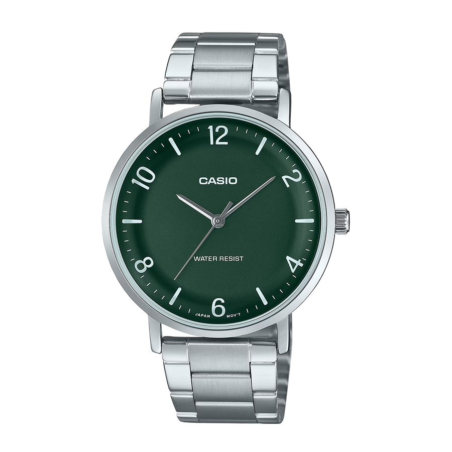 Jam Tangan Casio MTP-VT03D-3B Men Green Dial Stainless Steel Band