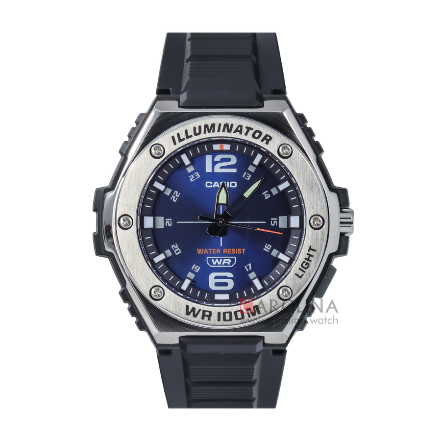 1x Jam Tangan Casio MWA-100H-2A Blue Dial Black Resin Band,