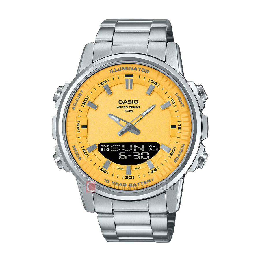 1x Jam Tangan Casio POP AMW-880D-9A Men Yellow Digital Analog Dial Stainless Steel Strap