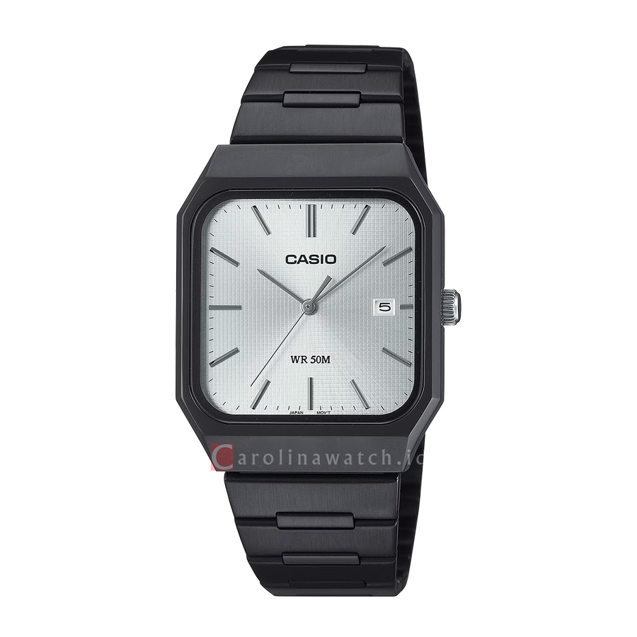 Casio Standard MTP-B185B-7A Men Silver Dial Black Stainless Steel Band