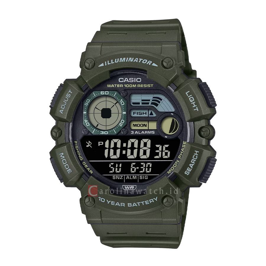 1x Jam Tangan CASIO WS-1500H-3B Men Digital Dial Green Resin Band,