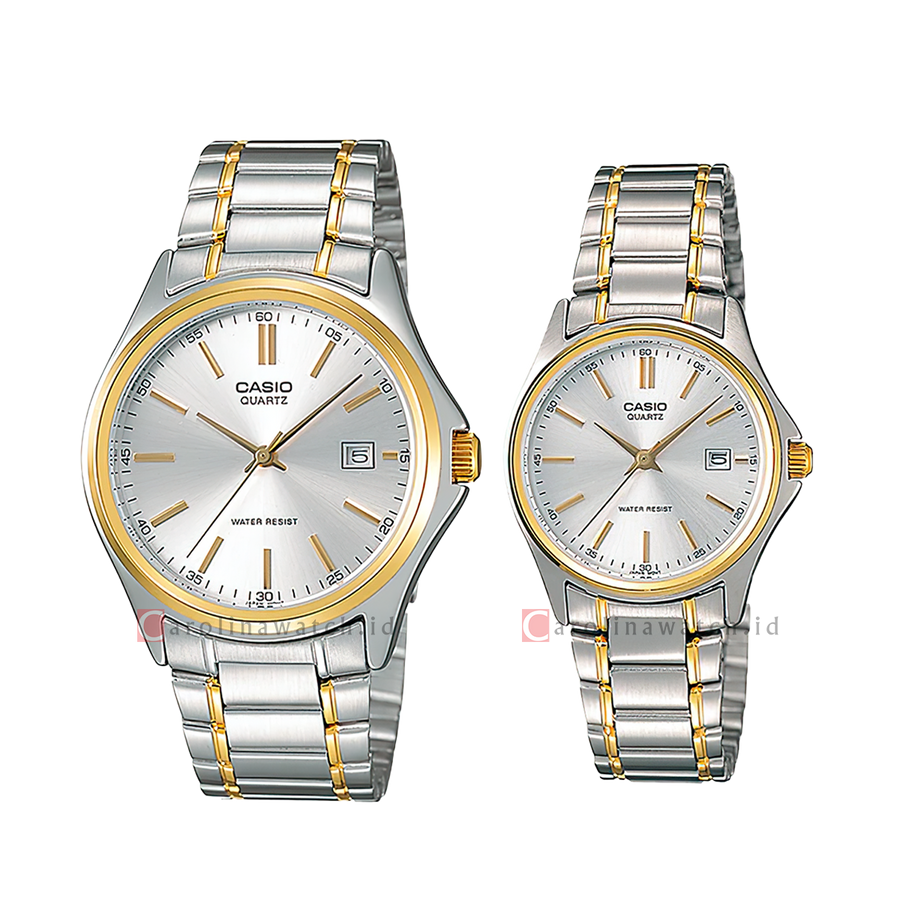 Jam Tangan Couple Casio M/LTP-1183G-7A Silver Dial Dual Tone Stainless Steel Strap