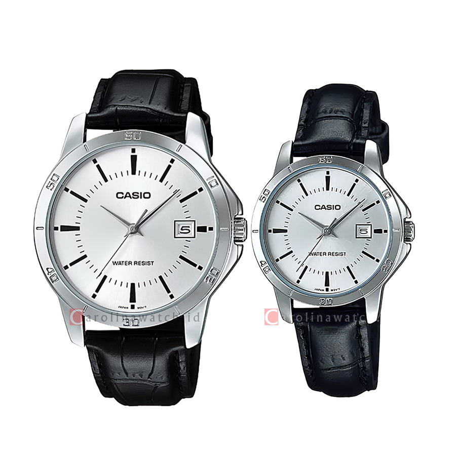 Jam Tangan Couple Casio M/LTP-V004L-7A Silver Dial Black Leather Band