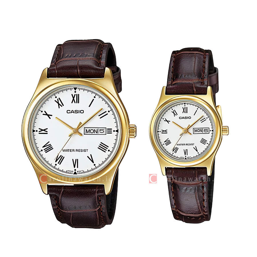 Jam Tangan Couple Casio M/LTP-V006GL-7B White Dial Brown Leather Band