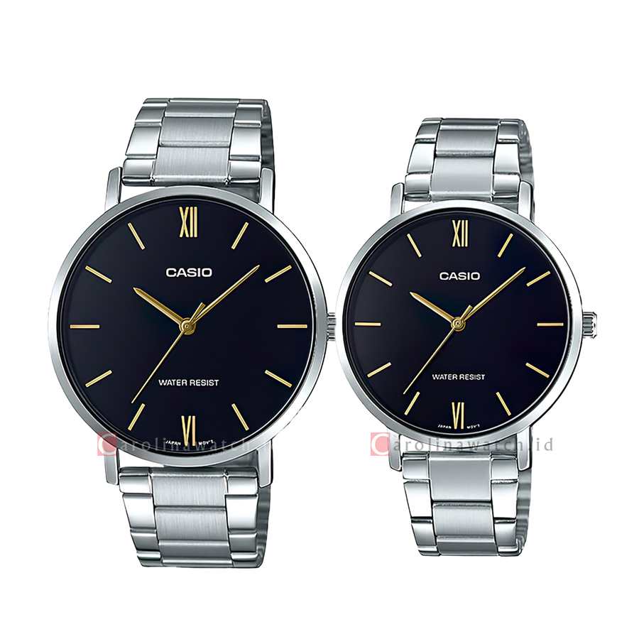 Jam Tangan Couple Casio M/LTP-VT01D-1B Black Dial Stainless Steel Band