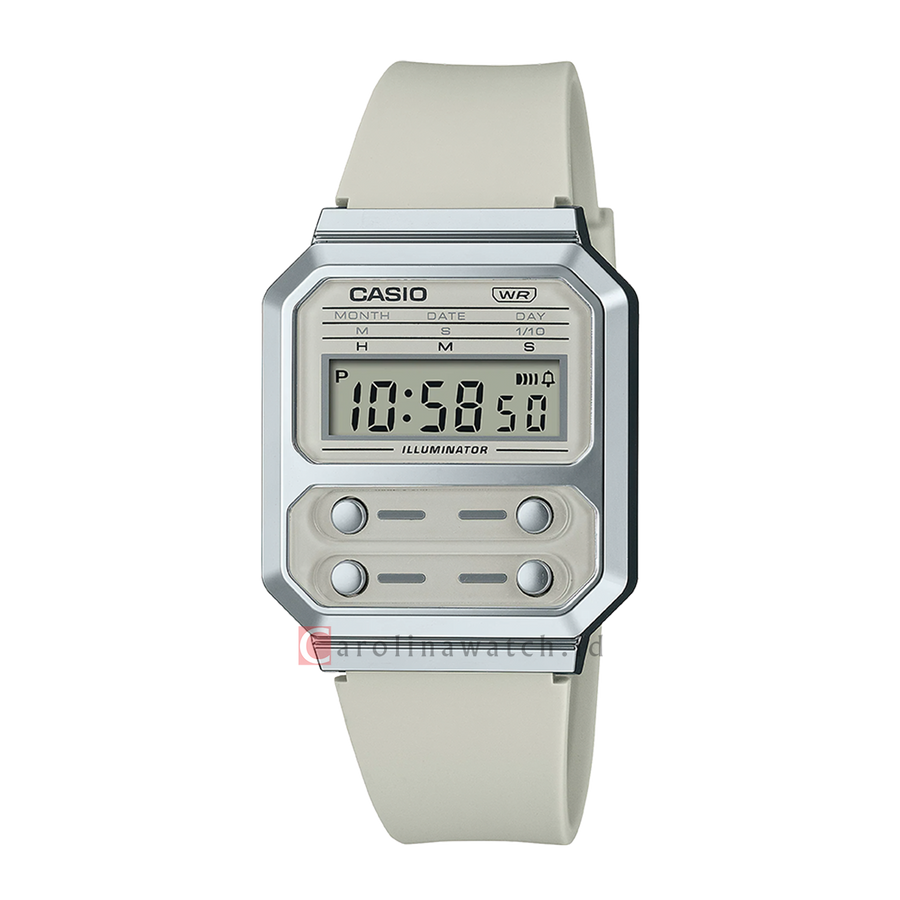 1x Jam Tangan Casio A100WEF-3A Unisex Digital Dial Beige Resin Band,