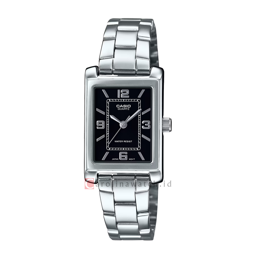 1x Jam Tangan Casio General LTP-1234DD-1A Tank Women Black Dial Stainless Steel Band