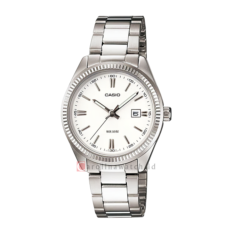 1x Jam Tangan Casio General LTP-1302D-7A1 Women White Dial Stainless Steel Band,