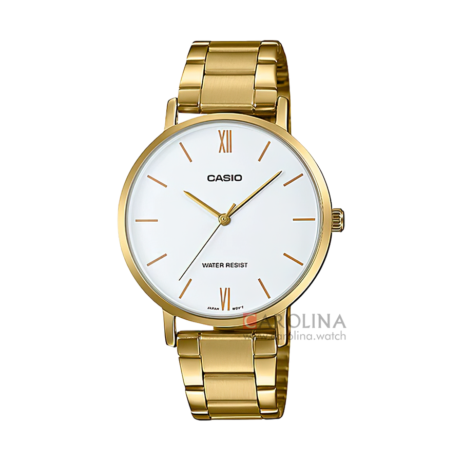 Jam Tangan Casio General LTP-VT01G-7B Women White Dial Gold Stainless Steel Band