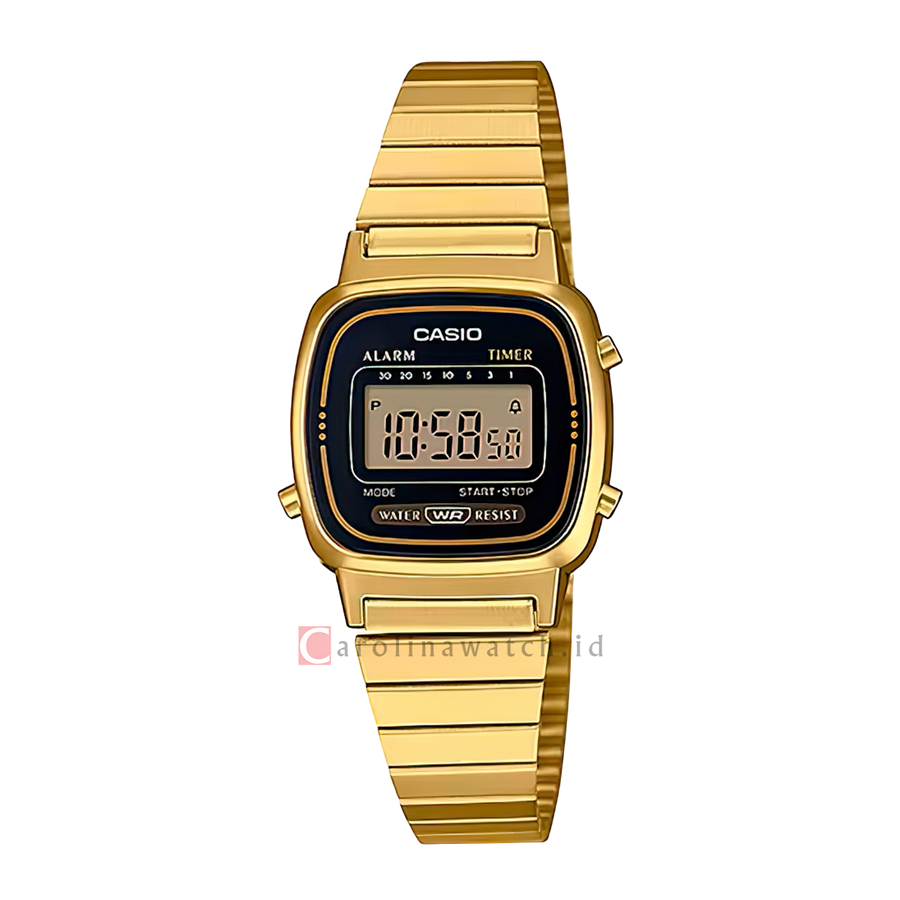1x Jam Tangan Casio General LA670WGA-1D Women Digital Dial Gold Stainless Steel Band