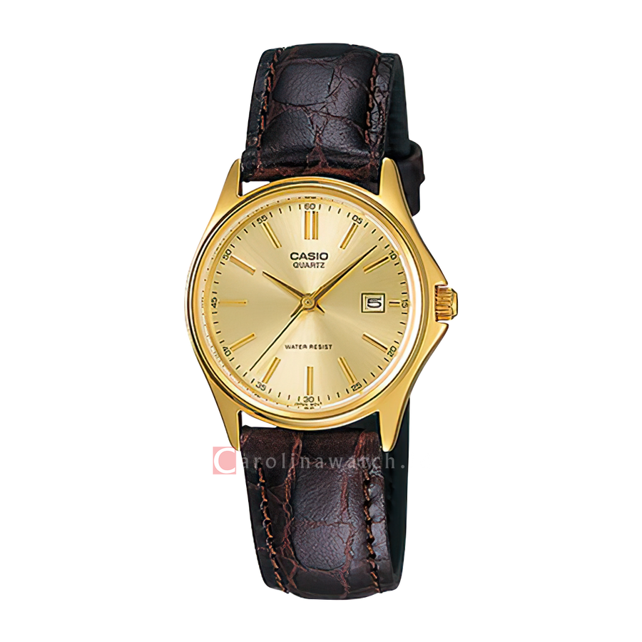 1x Jam Tangan Casio General LTP-1183Q-9A Women Gold Dial Brown Leather Band,